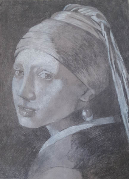 Girl with a Pearl Earring (Drawing after Vermeer) graphite and Prismacolor on toned paper, 9 1/2" x 12 1/2"